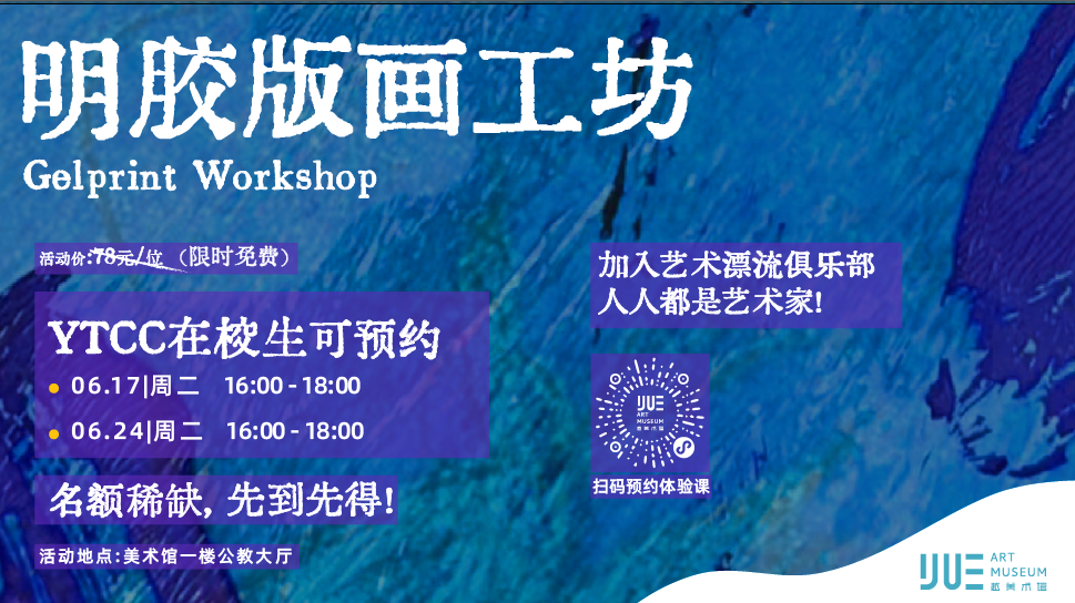 艺术的魅力在于它的普及和共享。为了让更多同学们加入越美术馆的艺术漂流俱乐部,共同体验艺术和创作的魅力,我们带着满满的诚意与期待向大家宣布:艺术漂流工坊现向YTCC在校生免费开放啦!