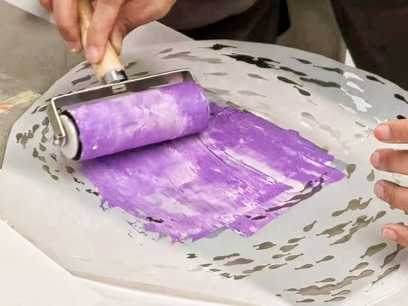 明胶版画是一种超有趣的版画艺术,它使用一种柔软有弹性的材料——Gelli Plate作为媒介。在创作时,我们将丰富的颜色涂抹于明胶板,再用刷子、网格纸、丢弃的废纸,甚至随手可得的小物件去创造纹理和图案。在得到作品后,可以选择利用贝壳、织物等材料尽情创造立体图景。